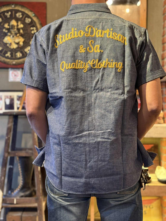 Studio D'Artisan Chain Embroidery Short Sleeve Chambray Shirt