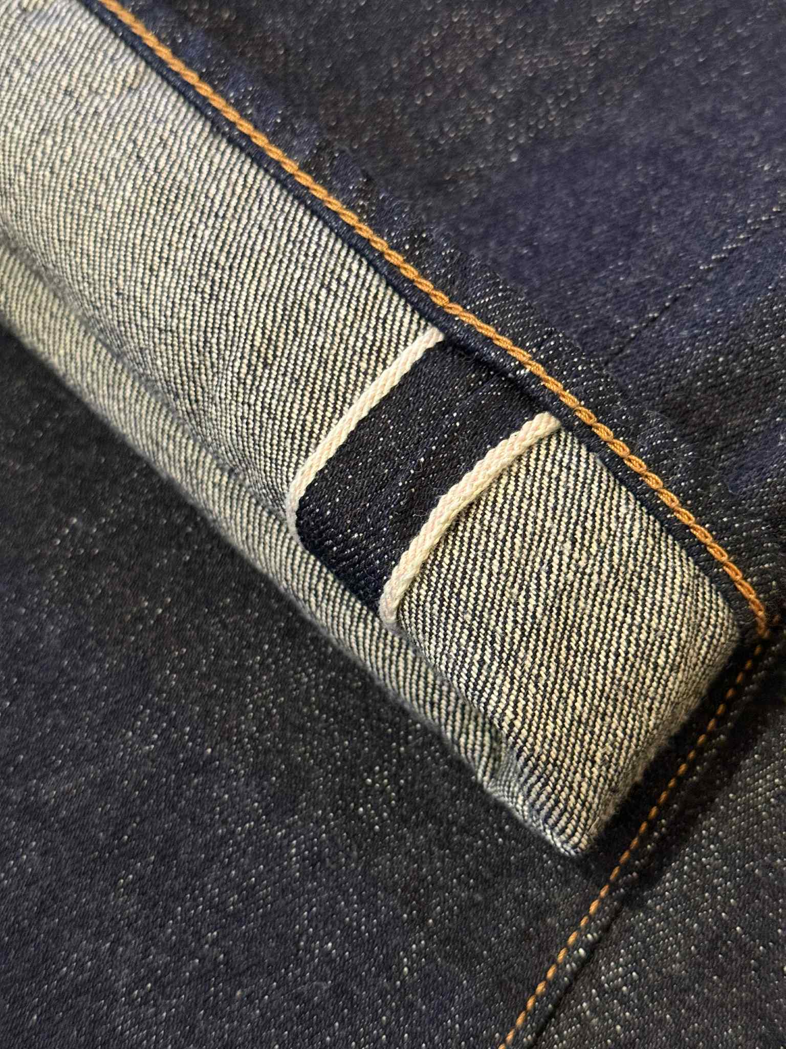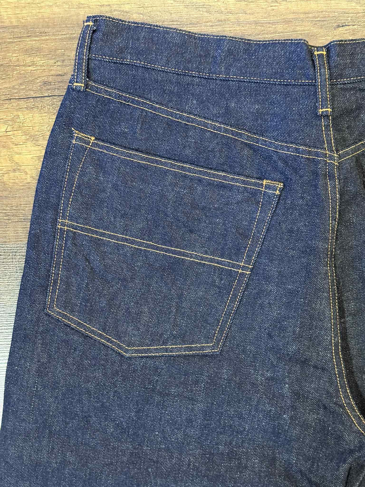 The Big John Denim Lot S1953WS is crafted from 100% premium SUVIN GOLD cotton, an exceptionally rare Indian fiber known for its smooth hand and natural luster. Woven on a vintage 1953 Ishikawa ring-spinning machine, this 14oz raw selvedge denim blends first- and second-pick fibers with fallen cotton to create a rich, textured fabric with rugged character. Details include a 10oz heavyweight olive Oxford pocket lining inspired by the Ishikawa mill, original zipper fly, copper rivets, and a distinctive black rayon label, combining traditional craftsmanship with refined design.