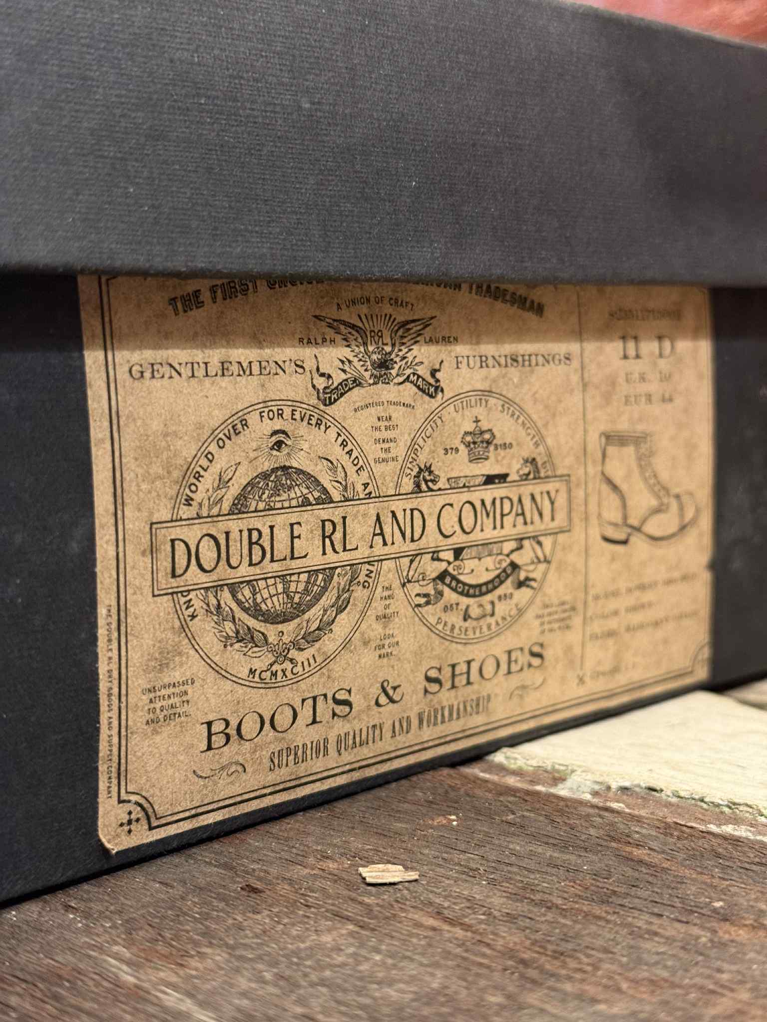 These Double RL Bowery Brogue Boots, from a personal collection and worn only once. They come with the original box, which shows some signs of wear with minor tears. Offered due to an incorrect size, these boots provide a rare opportunity to own high-quality, nearly new footwear.