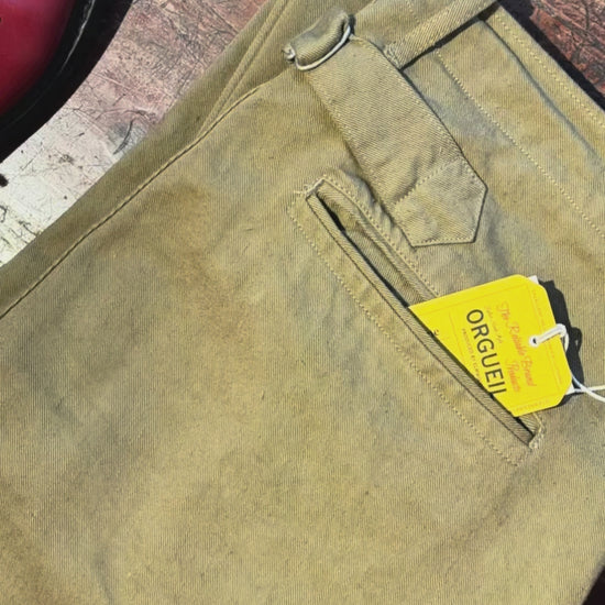 Orgueil Rebuild Chino Trousers are inspired by early 1900s military jodhpurs, thoughtfully reconstructed with a regular silhouette for enhanced ease of wear. Crafted from 100% cotton and constructed in Japan, these high-waisted trousers blend traditional design with exceptional quality and modern comfort.
