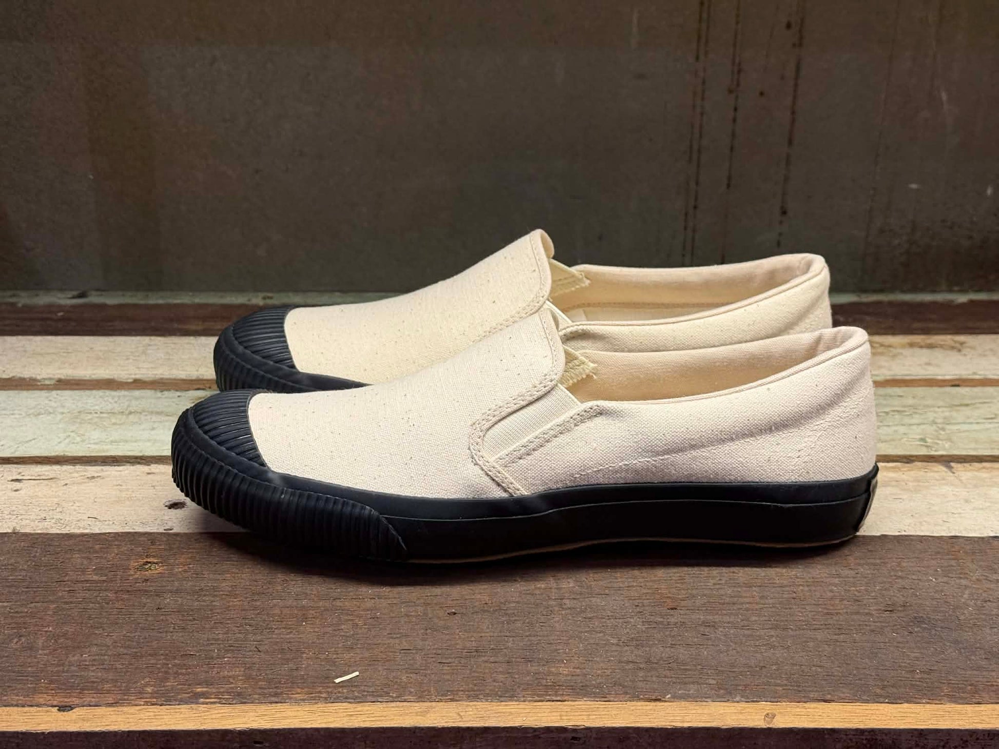Step into timeless style with the PRAS SHELLCAP Series Slip-On sneakers, a refined homage to 1950s athletic footwear reimagined through meticulous Japanese engineering. Crafted entirely in Japan, these canvas sneakers showcase vulcanised construction—a labour-intensive technique where soles bond to uppers through kiln firing, available from only two specialised Kurume factories.
