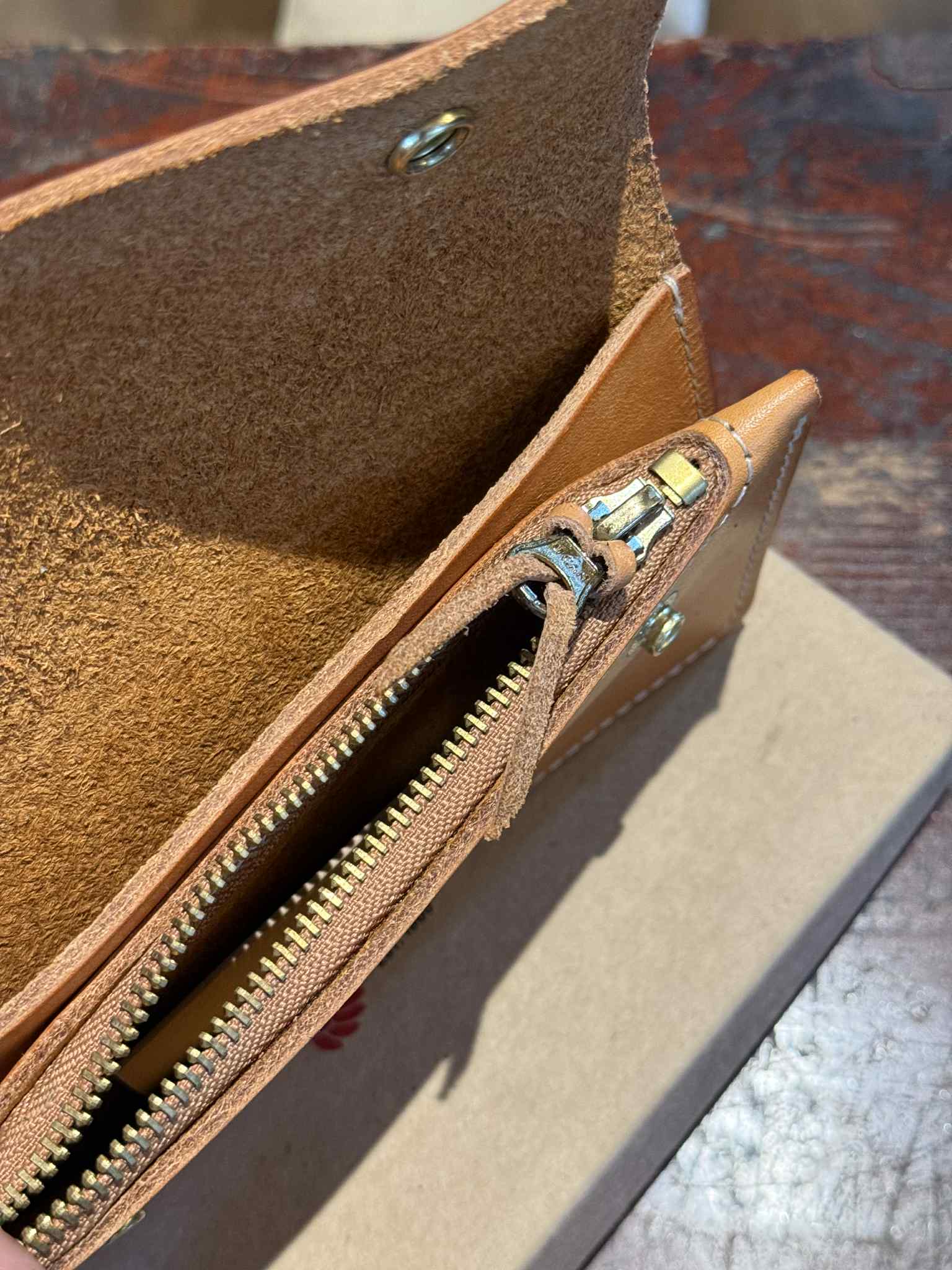 Crafted from premium vegetable-tanned leather, the Red Wing Shoes Trucker Wallet develops a distinctive patina over time, enhancing its character and durability. Designed with practicality in mind, it features a bill slot accommodating international currencies and a secure zipper pouch ideal for coins. The wallet closes with sturdy brass snap buttons, ensuring your essentials stay protected. Proudly made in the USA, this wallet blends timeless craftsmanship with functional design for everyday use.