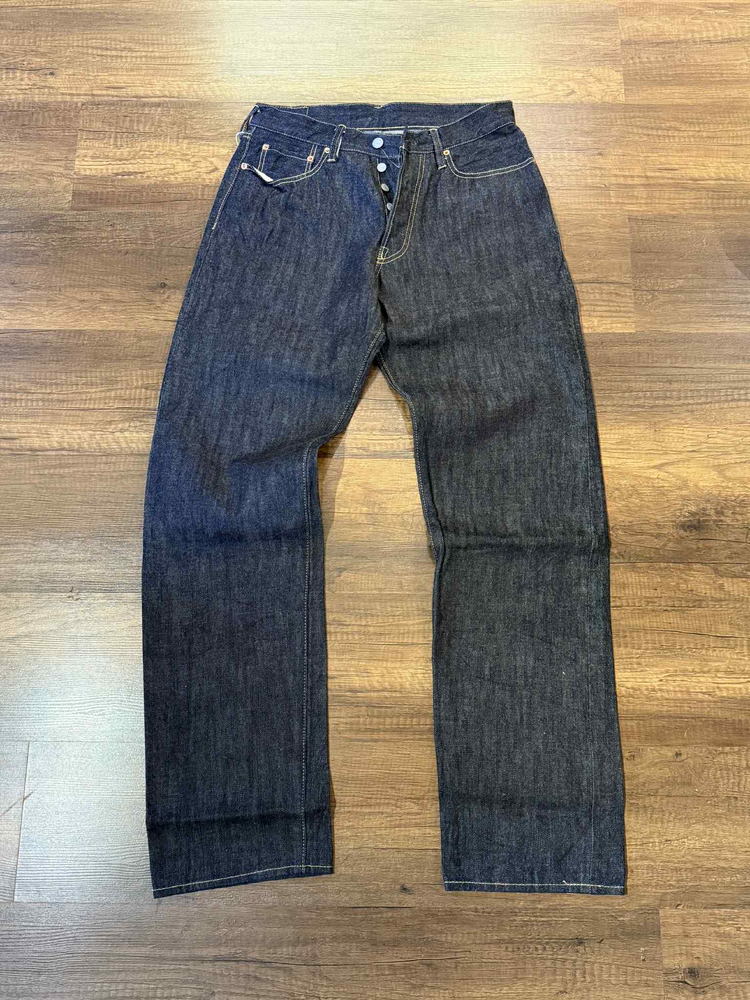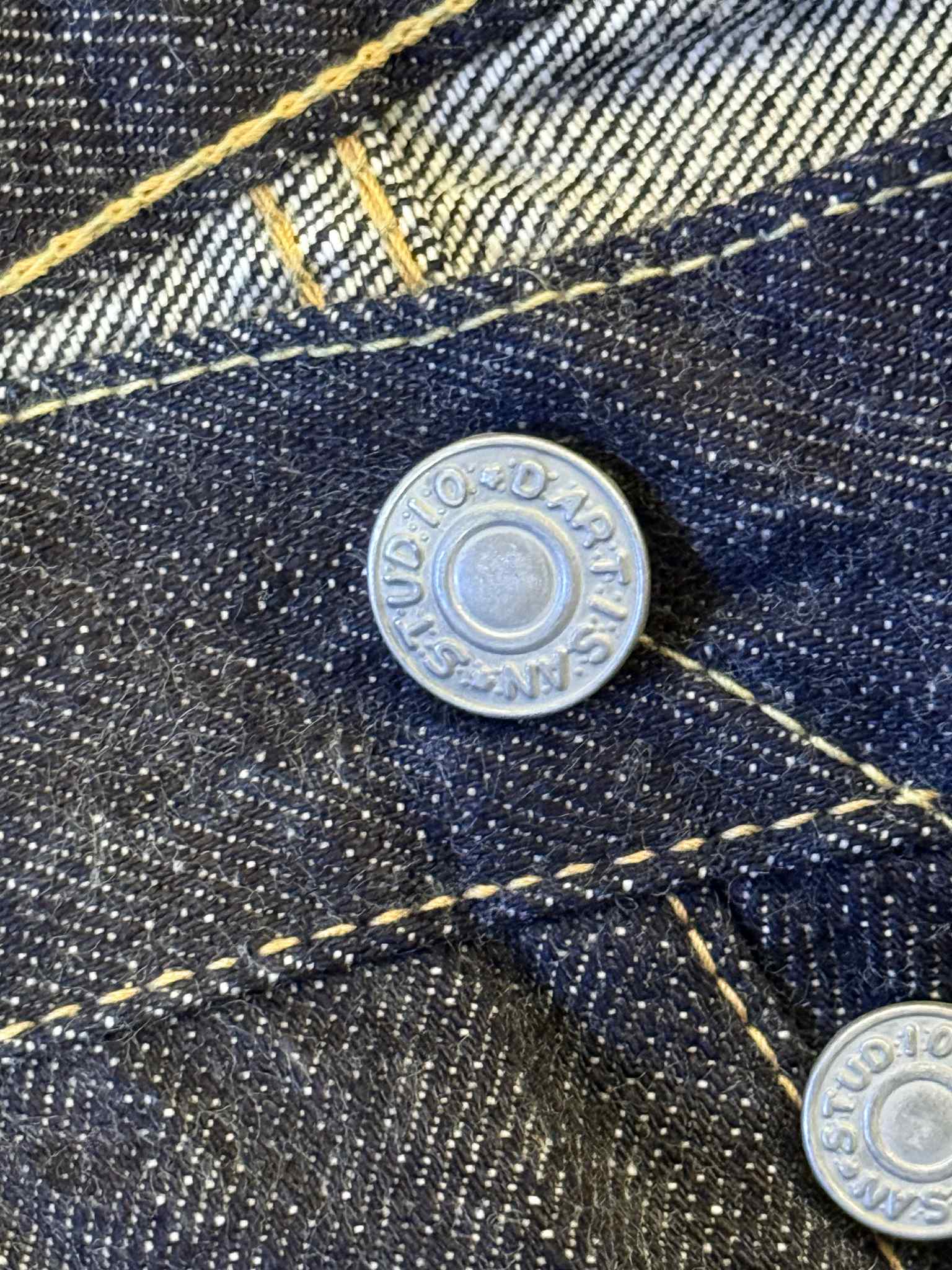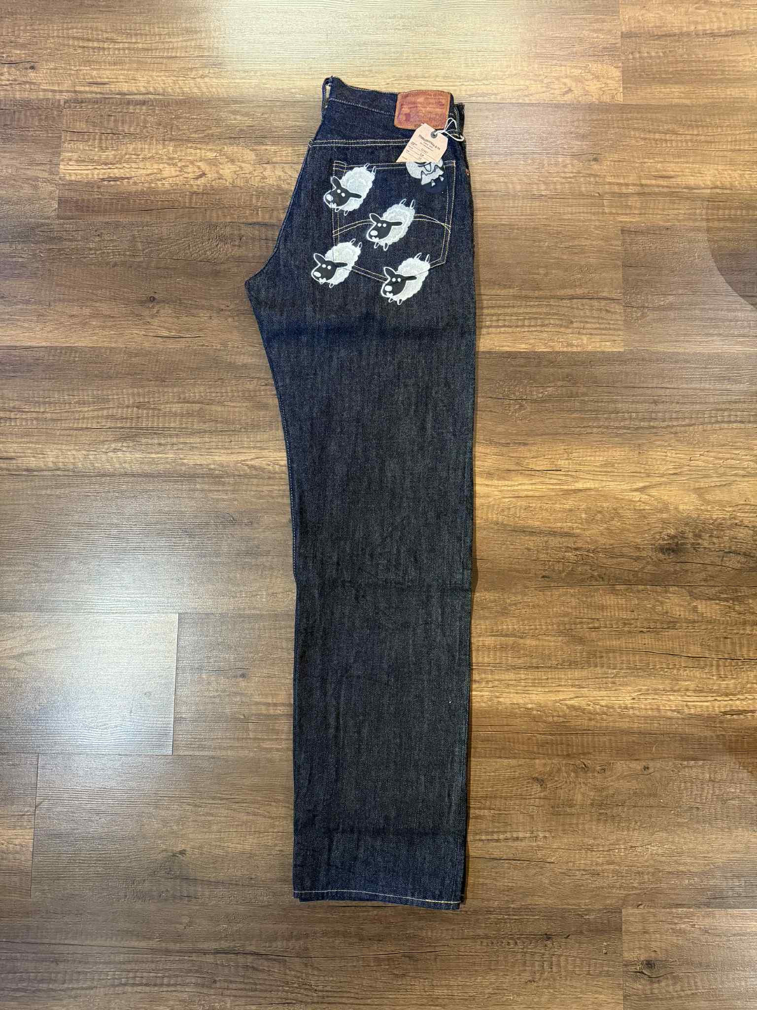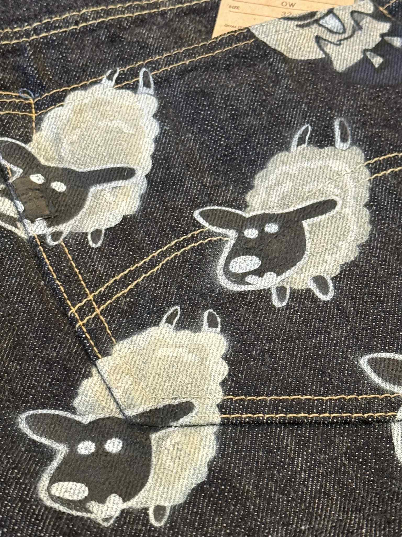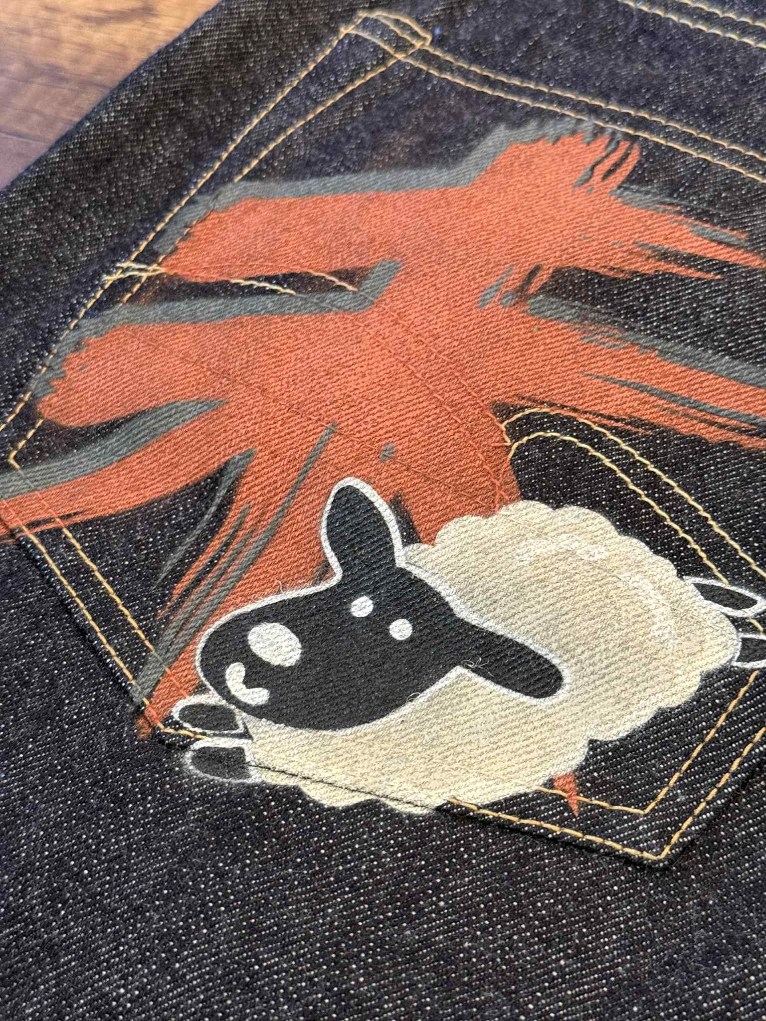 Part of the exclusive 2015 personal collection, these Studio D'Artisan "Sheep" Zodiac Series jeans showcase a unique blend of craftsmanship and cultural symbolism. Featuring a regular silhouette ideal for versatile wear, the jeans are distinguished by spray-painted sheep and pig motifs on the back, subtly celebrating the zodiac theme. Finished with a one-wash treatment, they offer a refined, comfortable fit with a vintage-inspired look that appeals to discerning collectors and denim enthusiasts alike.