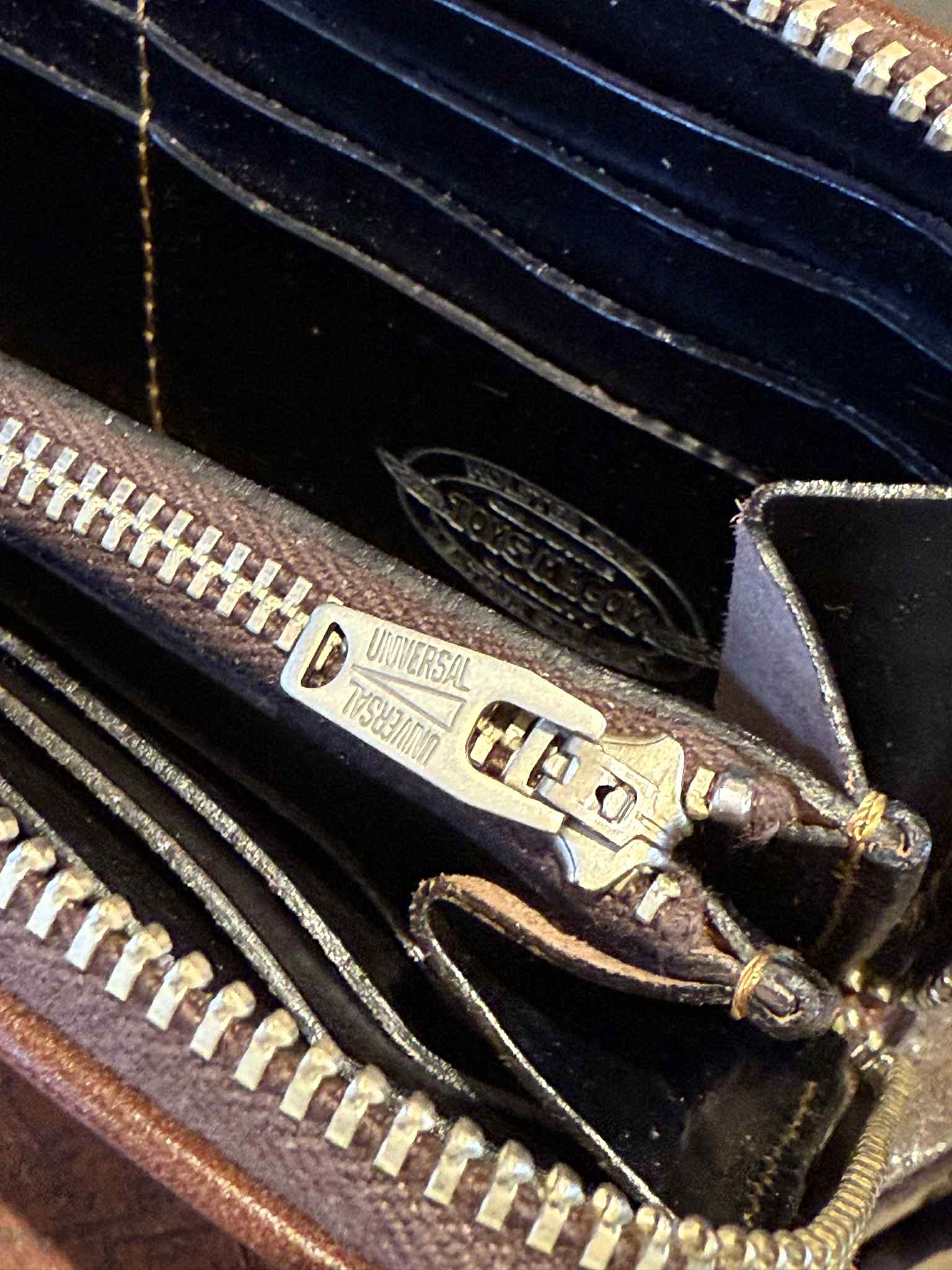 The Toys McCoy Leather Long Wallet is meticulously crafted in Japan from premium horsehide leather, known for its strength and distinctive patina over time. It features a durable Universal zipper for secure closure and multiple card compartments to keep your essentials organized with ease. This wallet combines traditional Japanese craftsmanship with practical functionality for the discerning user.