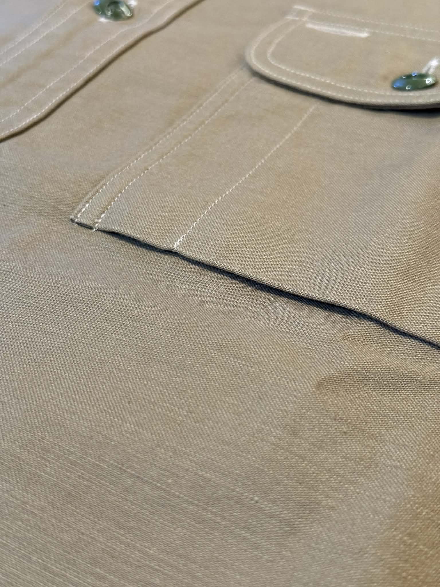 Signature details including engraved cat's eye buttons and a pen holder integrated into the front flap elevate this piece beyond standard shirting. Constructed from premium 20/- and textured 18/- satin, the fabric combines lustrous depth with a moderately dense weave that tightens subtly after washing, enhancing the surface texture. A refined garment designed to become a cherished wardrobe staple.
