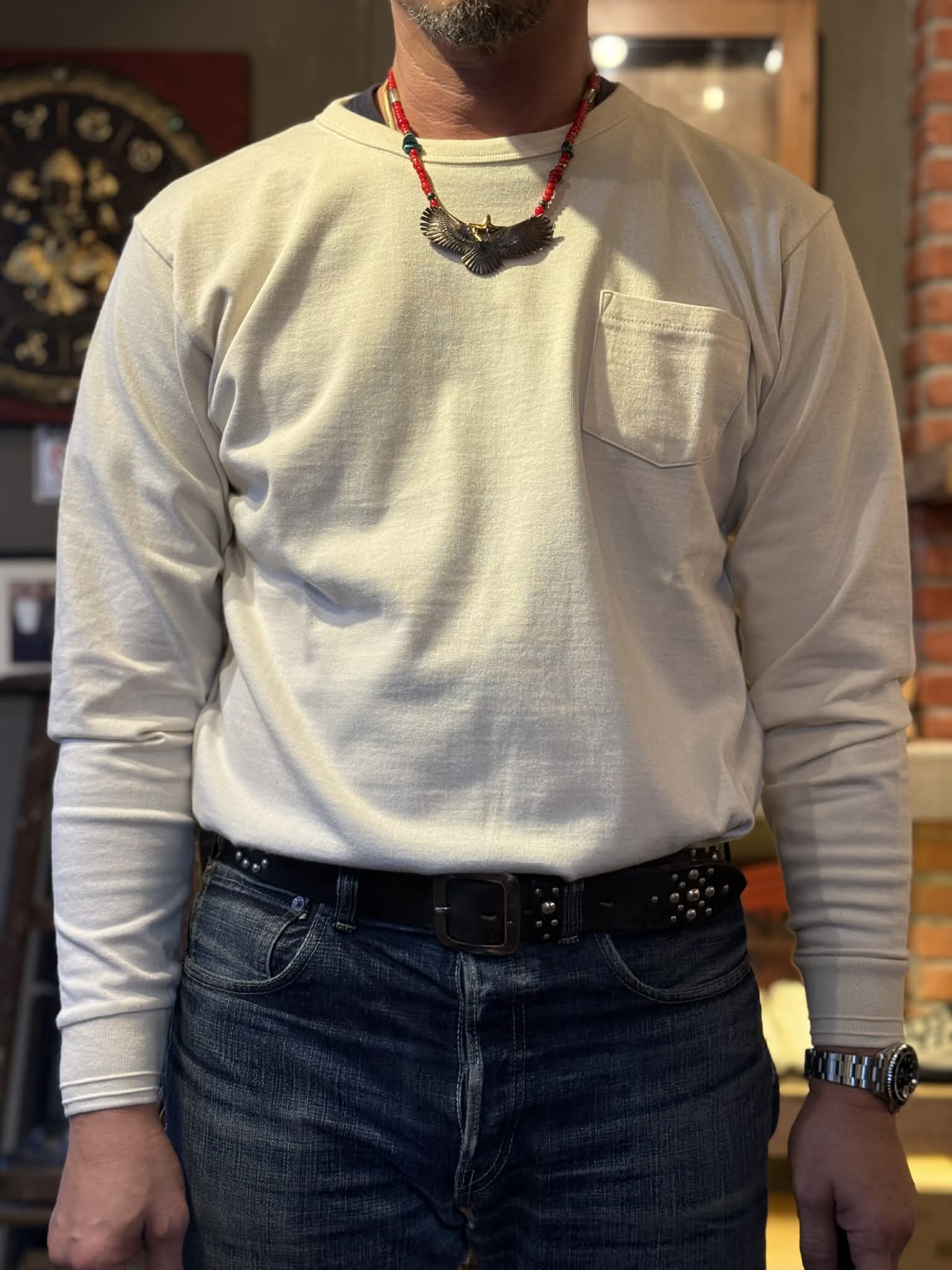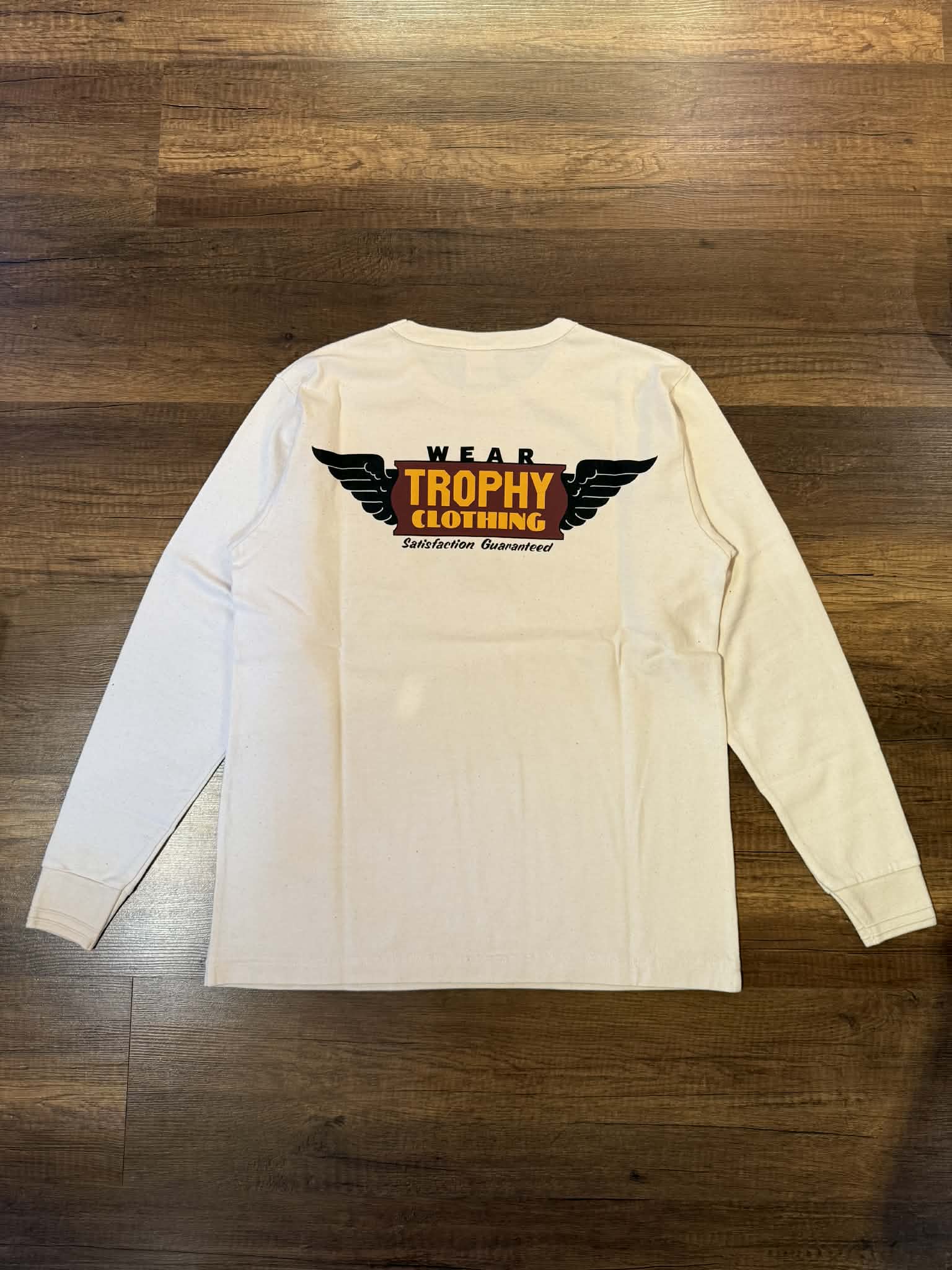 This Trophy Clothing Tee is expertly crafted in Japan with the original 9.5oz jersey fabric, providing both durability and comfort. Wear it on its own or as an undershirt, and enjoy the double-stitched cuffs and hem for a long-lasting, stable silhouette. Featuring the iconic "Wing Logo" design by NUTS ART WORKS' Naoto Hinai.